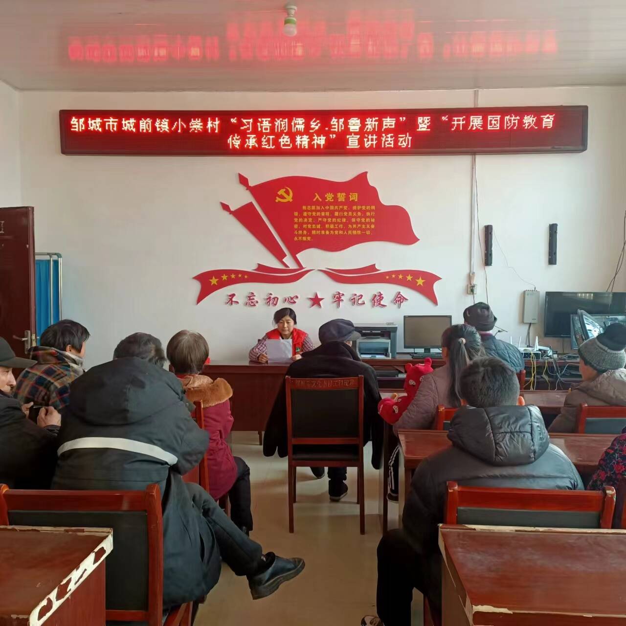 为进一步弘扬爱国主义精神,普及全民国防教育,增强村民群众的国防意识和国防观念,自觉履行国防义务,关心、支持、参与国防建设,推动全民国防教育工作走深走实,12月27日,城前镇小崇村在村新时代文明实践站开展“习语润儒乡•邹鲁新声”暨“开展国防教育 传承红色精神”宣讲活动。13名党员群众参与活动。