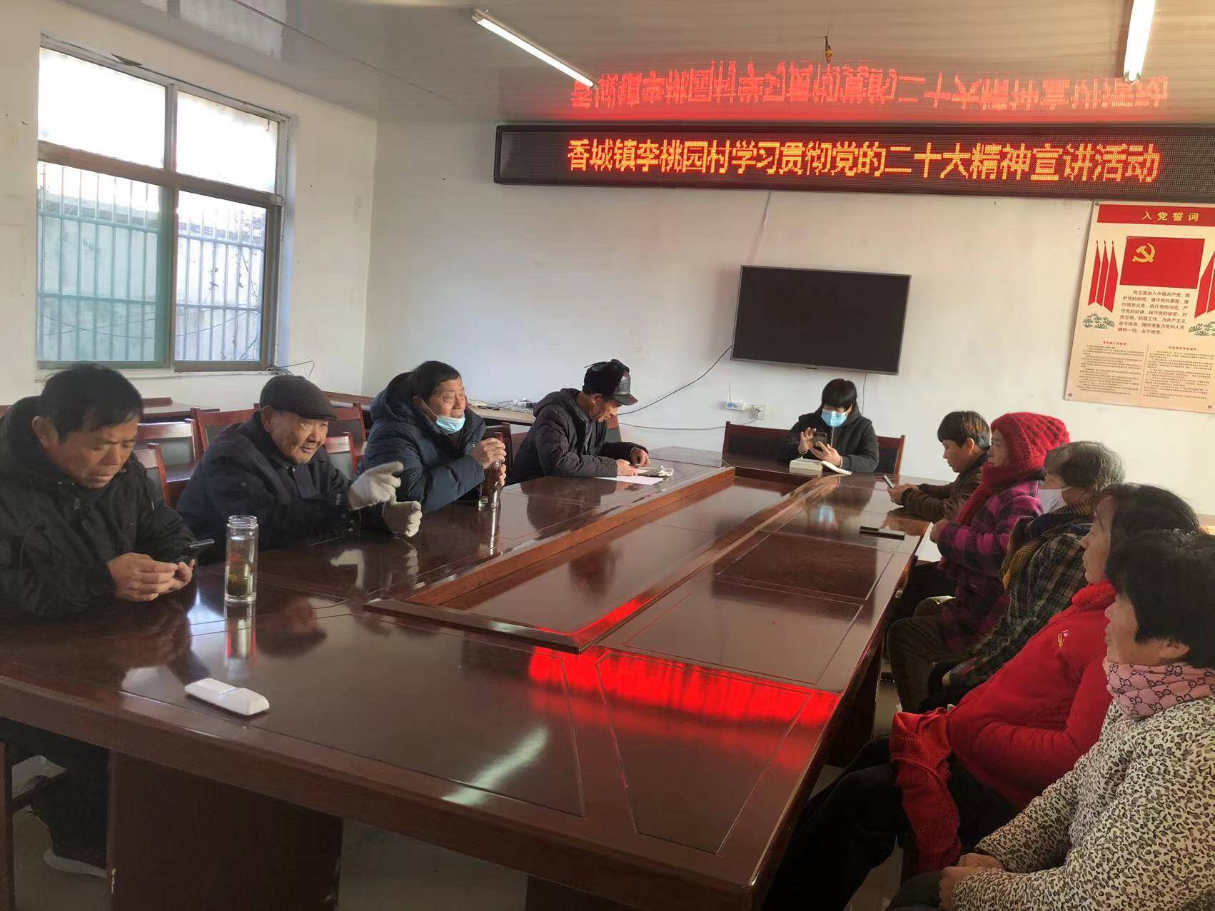 为深入学习贯彻习近平新时代中国特色社会主义思想和党的二十大精神,扎实推动党的二十大精神入脑入心、走深走实,让广大党员群众全面、准确地学习掌握党的二十大精神,用党的二十大精神统一思想和行动。12月26日,香城镇李桃园村组织党员干部及群众代表在村新时代文明实践站开展学习贯彻党的二十大精神宣讲,11人参加活动。