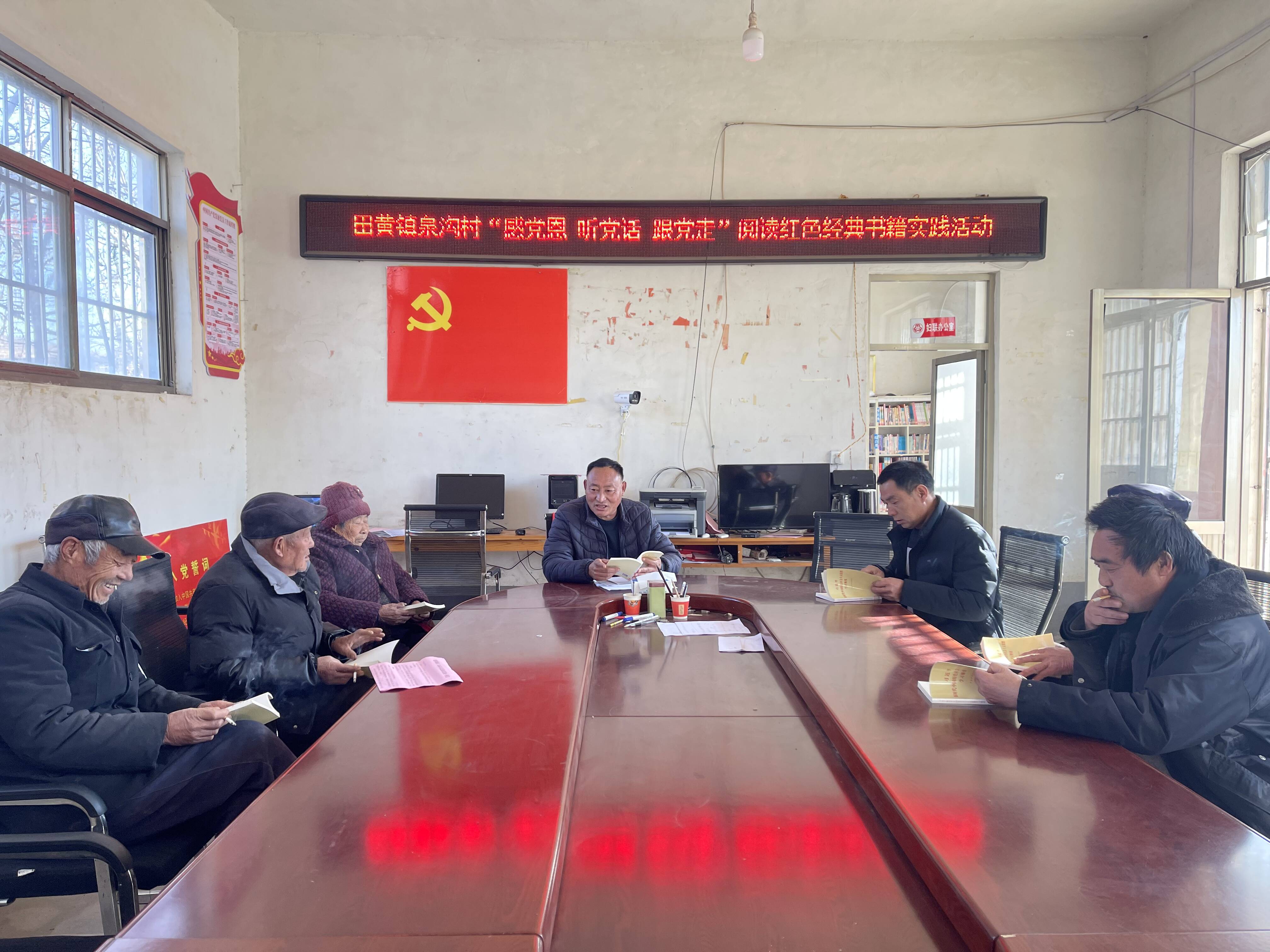 2023年12月28日,田黄镇泉沟村党支部书记贺安军,在村委会带领党员群众5人参加此次宣讲活动。宣讲活动从阅读红色书籍、讲红色故事、听群众感受三个方面顺利实施,参会人员深感中国共产党创业之艰辛,纷纷表示出爱党爱国情感。